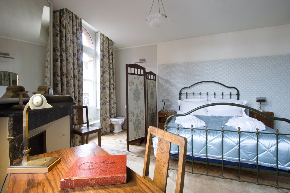 Assurer sa montée en gamme tout en préservant le patrimoine exceptionnel de l’établissement hôtelier emblématique de l’aventure de l’Aéropostale, tel est le fil directeur de l’opération. Elle se réalise suivant un dialogue continu avec l’architecte des bâtiments de France. Un design contemporain, sobre mais très soigné, dialogue avec la facture des éléments historiques (hall d’entrée, réception, sol en mosaïque) pour apporter un niveau de confort 4 étoiles. La chambre 32, connue pour avoir hébergé Jean Mermoz, est aménagée comme lieu de mémoire (reproduction à l’identique d’après clichés d’époque). L’escalier et l’ascenseur Belle Époque sont également préservés, mais le second se double d’un autre, plus adapté aux normes d’aujourd’hui.